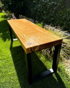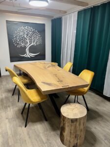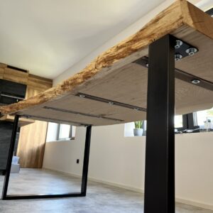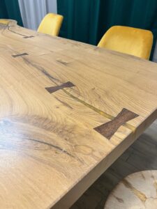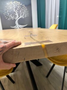 - Masivní stůl (z jednoho kusu stromu, ne lepený), individuální rozměry dle požadavků, možnost koupě pouze dřeva, nebo případně i nohou a finální zalakování na míru. Zespoda stolu jsou zafrézované kovové části, které zabraňují stolu aby se kroutil. Tudíž je stabilní a pevný. Standardní rozměr stolů, které vyrábíme, je cca 180x90x6cm.