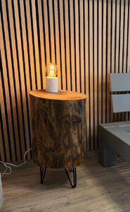 - Špalek z masivního dřeva – jako noční stolek, polička, nebo i možnost využití na sezení. Různé průměry dle požadavků, běžně cca 20-40cm.