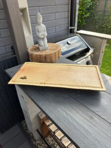- Grilovací a servírovací PRKÉNKO – každý kus originál, rozměr cca 60x30x5cm. Povrchová úprava OSMO olej na dřevěná prkénka. Dřevo ořech.